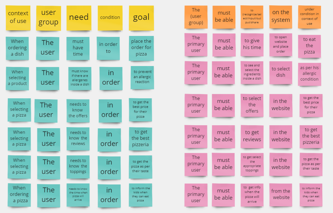 Brainstorming - participants think about users, tasks, resources and environment and write them down on post-it notes